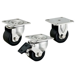 Máquina 304 SUS Suporte Perfil Baixo 3 Polegada PA Roda Pesada Giratória Rodízio De Freio De Nylon Preto